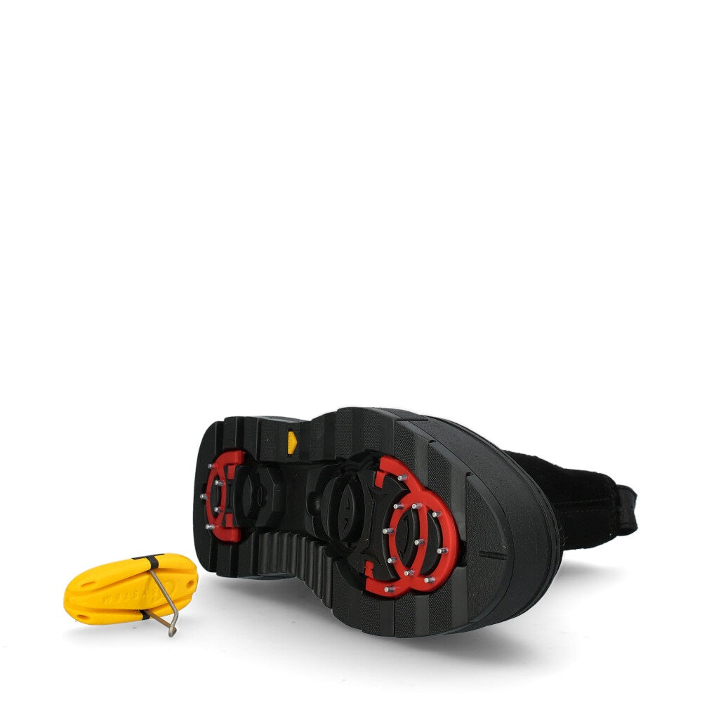 Yttersulan är designad med praktiska utfällbara broddar från italienska ALPI. Dessa broddar kan enkelt fällas ut med hjälp av den medföljande specialnyckeln, vilket ger extra grepp och stabilitet på hala ytor som is.