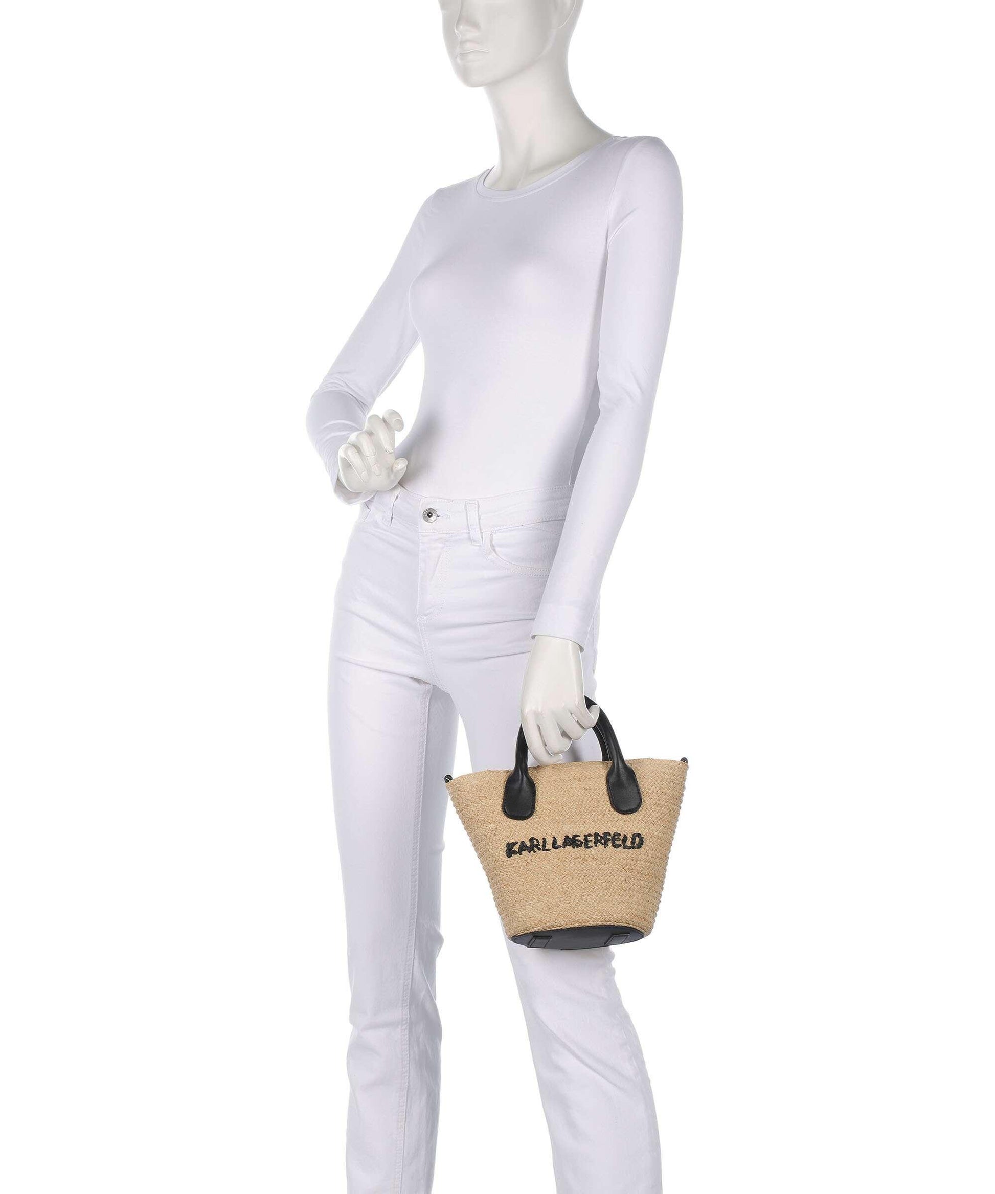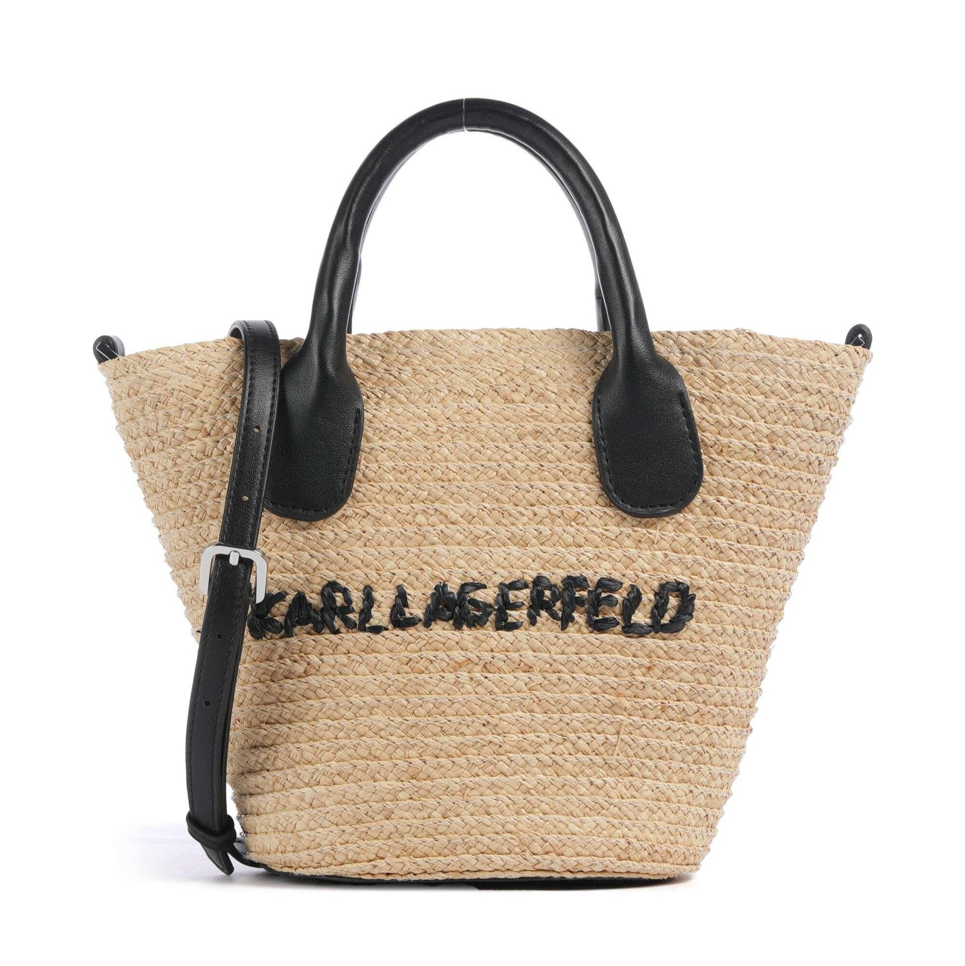 Karl Essential Small Beach Bag är en stilren och somrig strandväska tillverkad av naturlig bast för en avslappnad men lyxig känsla. Väskan har svarta kontrastdetaljer och pryds av en elegant broderad Karl Lagerfeld-signatur framtill.