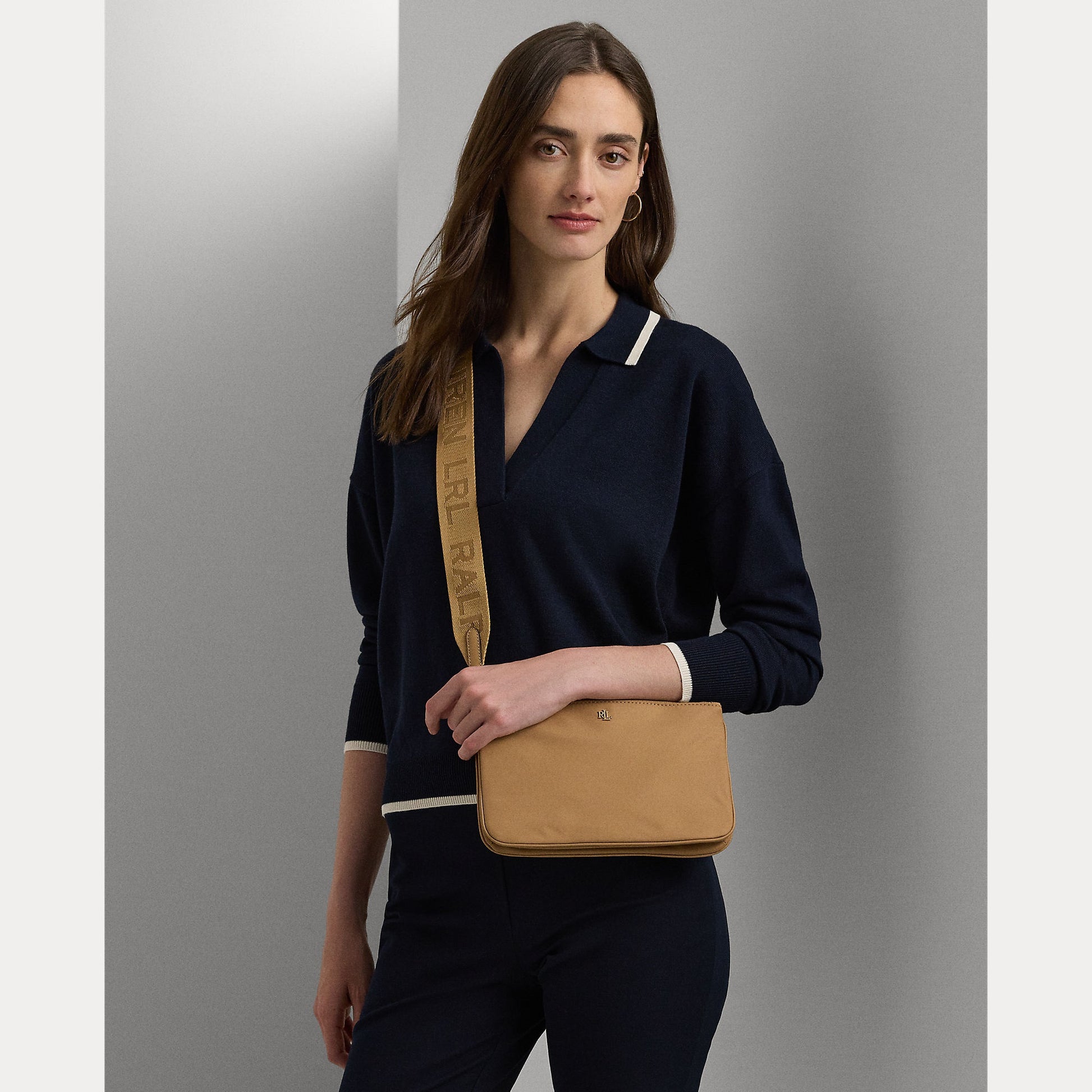 Landyn crossbody-väskan är ett mångsidigt och stilfullt tillbehör som erbjuder användaren en flexibel och elegant lösning för att bära sina väsentligheter. Med sin konvertibla design erbjuder den en avtagbar och justerbar rem tillverkad av högkvalitativt canvas med en "Lauren Ralph Lauren" logo på.