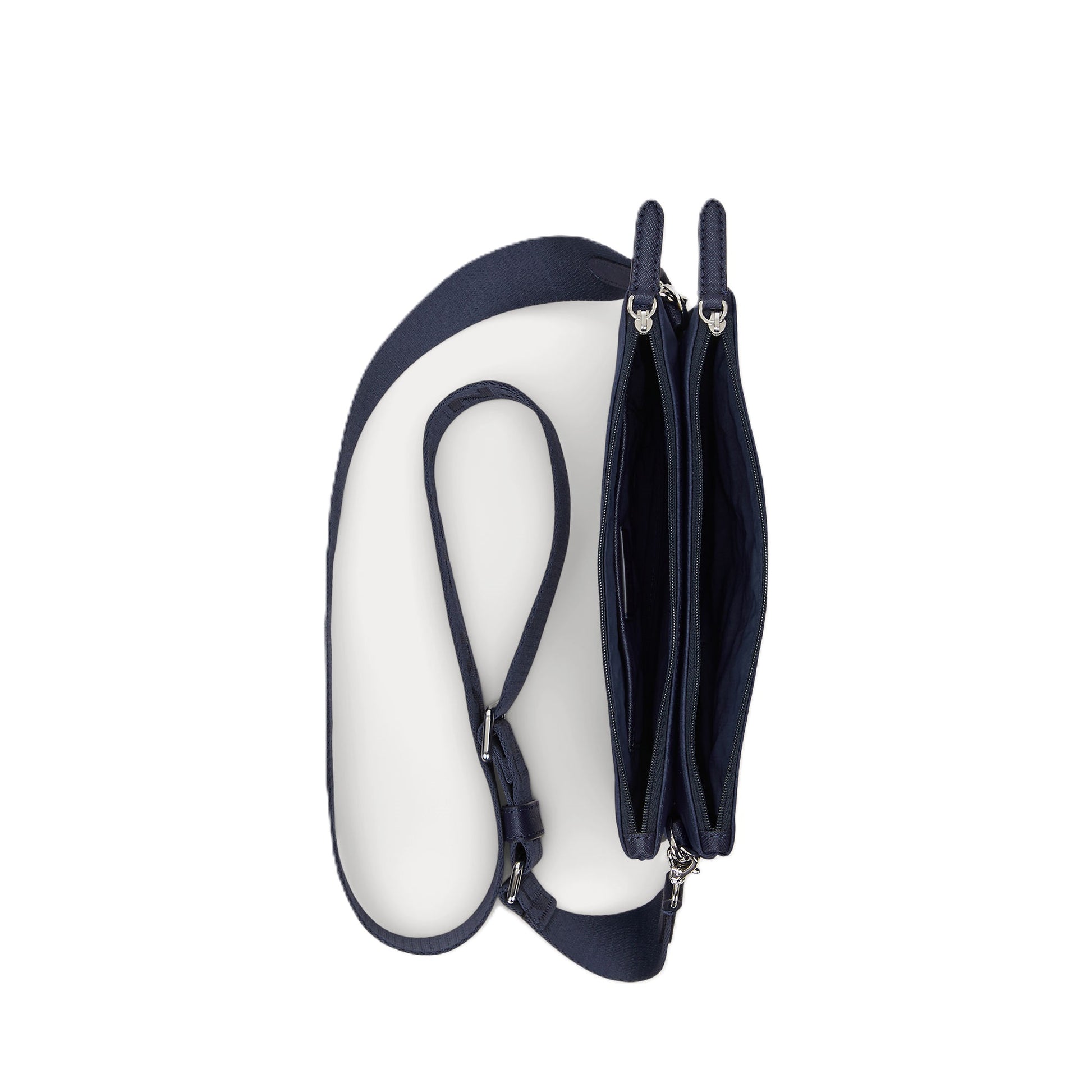Landyn crossbody-väskan är ett mångsidigt och stilfullt tillbehör som erbjuder användaren en flexibel och elegant lösning för att bära sina väsentligheter. Med sin konvertibla design erbjuder den en avtagbar och justerbar rem tillverkad av högkvalitativt canvas med en "Lauren Ralph Lauren" logo på.