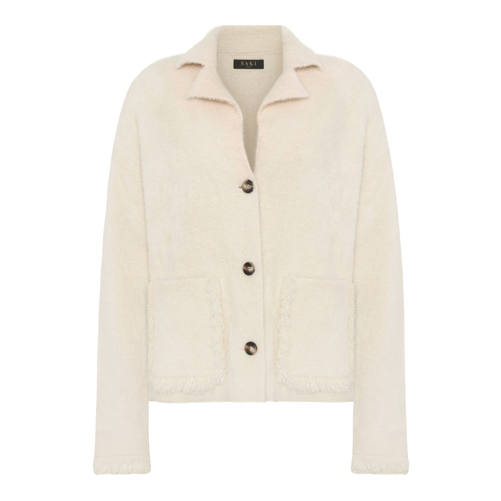 Lillian Blazer är en kort, mjuk och tidlöst elegant blazer som lyfter varje outfit med en sofistikerad och modern känsla. Den fluffiga, lyxiga kvaliteten ger ett exklusivt uttryck samtidigt som den är behaglig att bära hela dagen. Modellen har en rak silhuett, klassisk krage och knappar som förstärker den stilrena designen. Vid ärmsluten och längs fickornas kanter finns korta, tunna fransar som ger en subtil och elegant detalj.