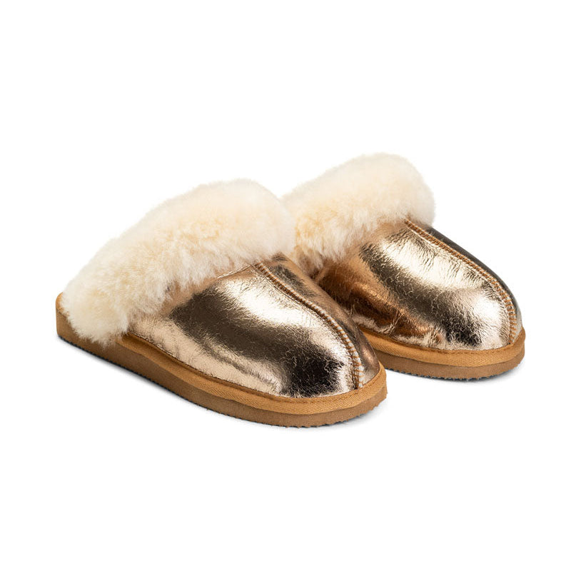 Jessica är en klassisk och elegant slip-in toffel som ger både komfort och stil. Dessa tofflor är tillverkade av högkvalitativt material och har en bred fårskinnskrage som ger en lyxig och mjuk känsla. Den dekorativa utanpåliggande sömmen framtill ger ett stilfullt och tidlöst utseende.