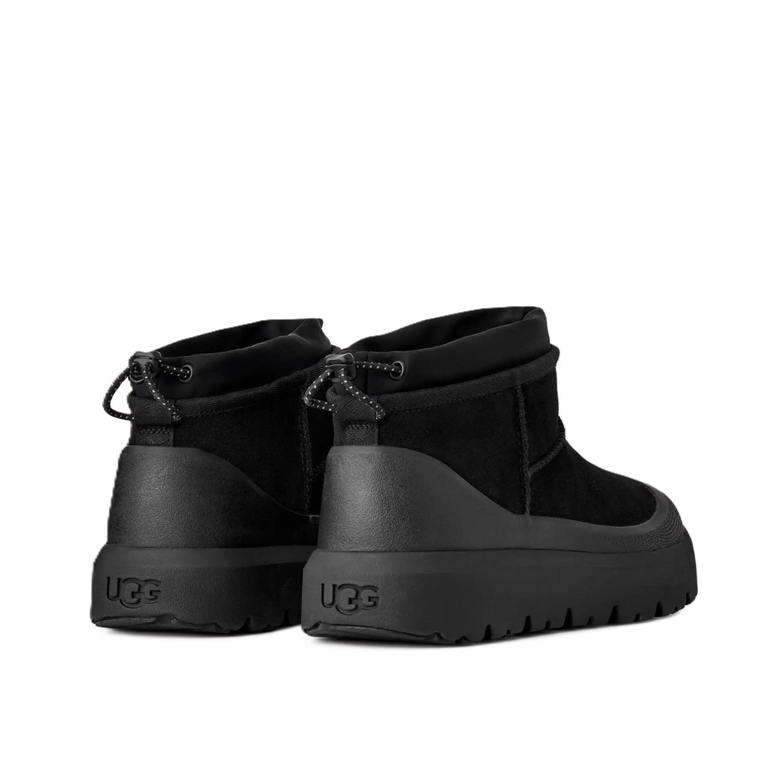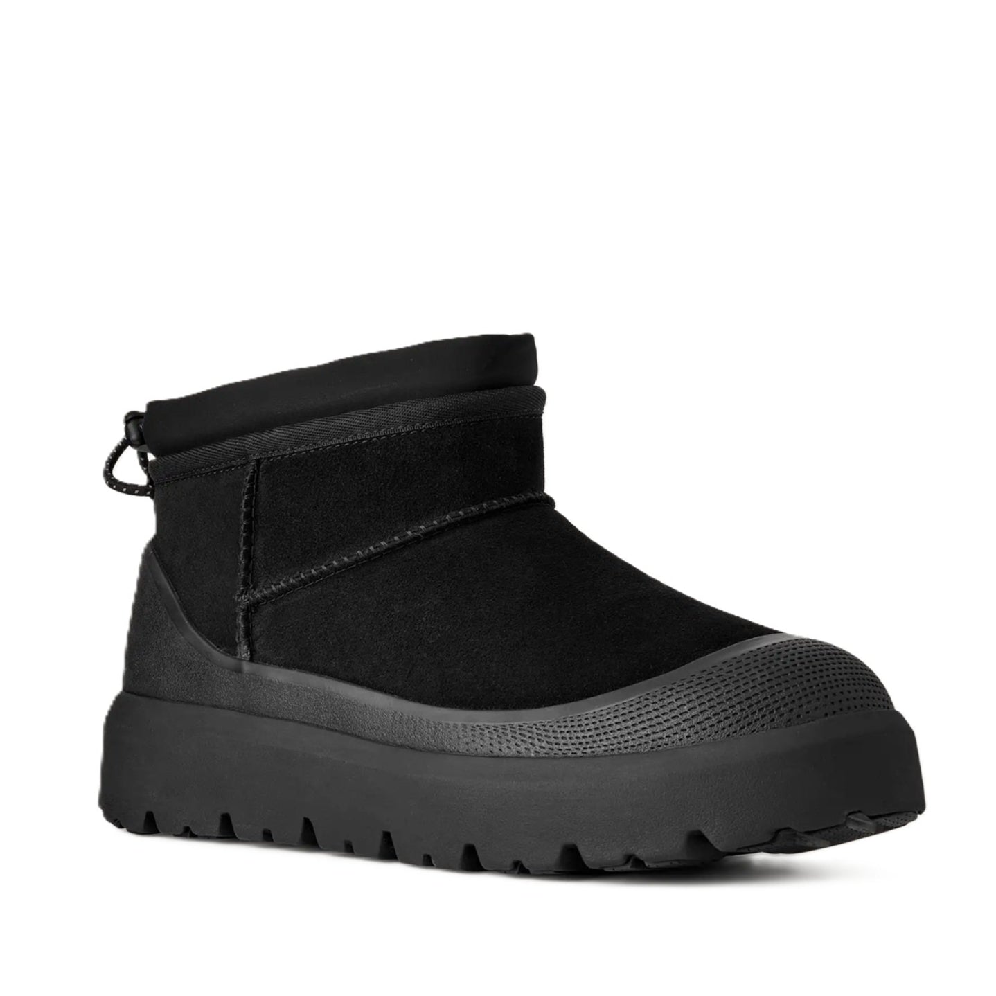 Classic Ultra Mini Weather Hybrid är en vädertålig version av den ikoniska Classic Ultra Mini. Tillverkad i rik, vattentät mocka och fodrad med UGGplush™ – en mjuk och värmande blandning av återvunnen ull – erbjuder den både komfort och hållbarhet.
