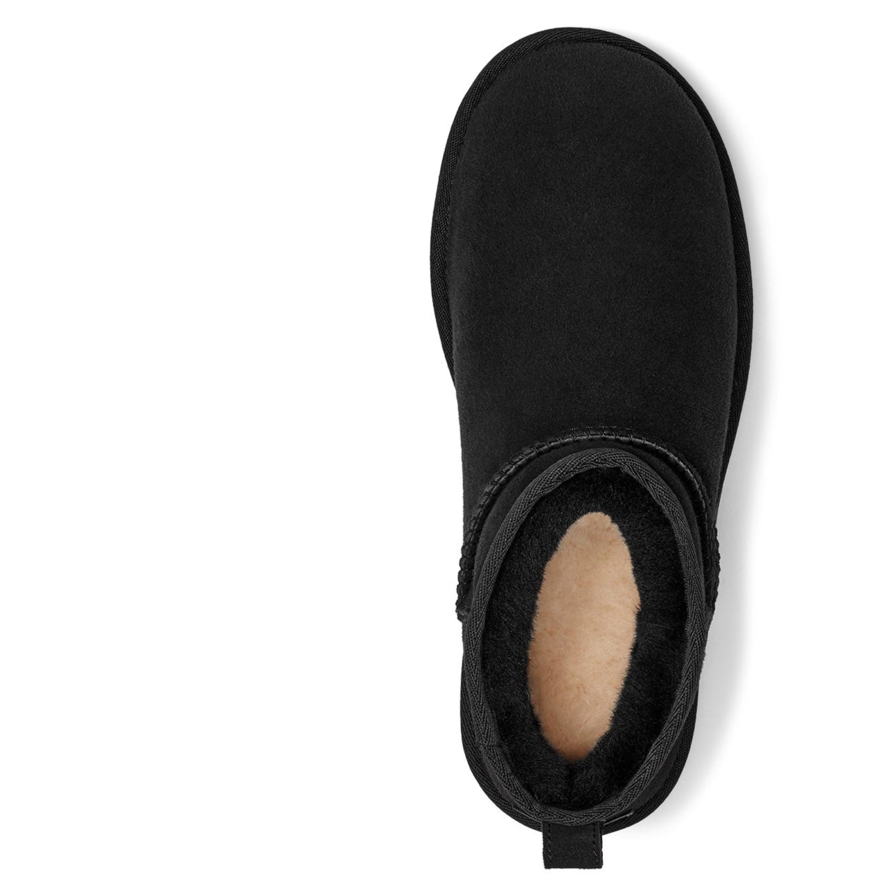 Classic Ultra Mini designad för att hålla dina fötter varma och bekväma. Fodret i UGGplush™, en blandning av ull och lyocell, erbjuder överlägsen mjukhet och värme. Den lätta och slitstarka yttersulan ger bra grepp och hållbarhet, perfekt för både inomhus- och utomhusbruk.