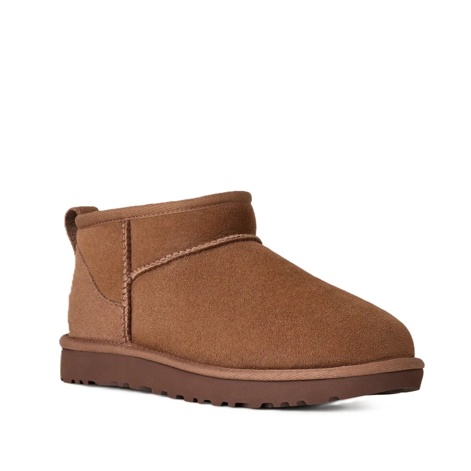 Classic Ultra Mini designad för att hålla dina fötter varma och bekväma. Fodret i UGGplush™, en blandning av ull och lyocell, erbjuder överlägsen mjukhet och värme. Den lätta och slitstarka yttersulan ger bra grepp och hållbarhet, perfekt för både inomhus- och utomhusbruk.