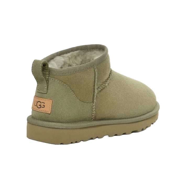 Classic Ultra Mini designad för att hålla dina fötter varma och bekväma. Fodret i UGGplush™, en blandning av ull och lyocell, erbjuder överlägsen mjukhet och värme. Den lätta och slitstarka yttersulan ger bra grepp och hållbarhet, perfekt för både inomhus- och utomhusbruk.