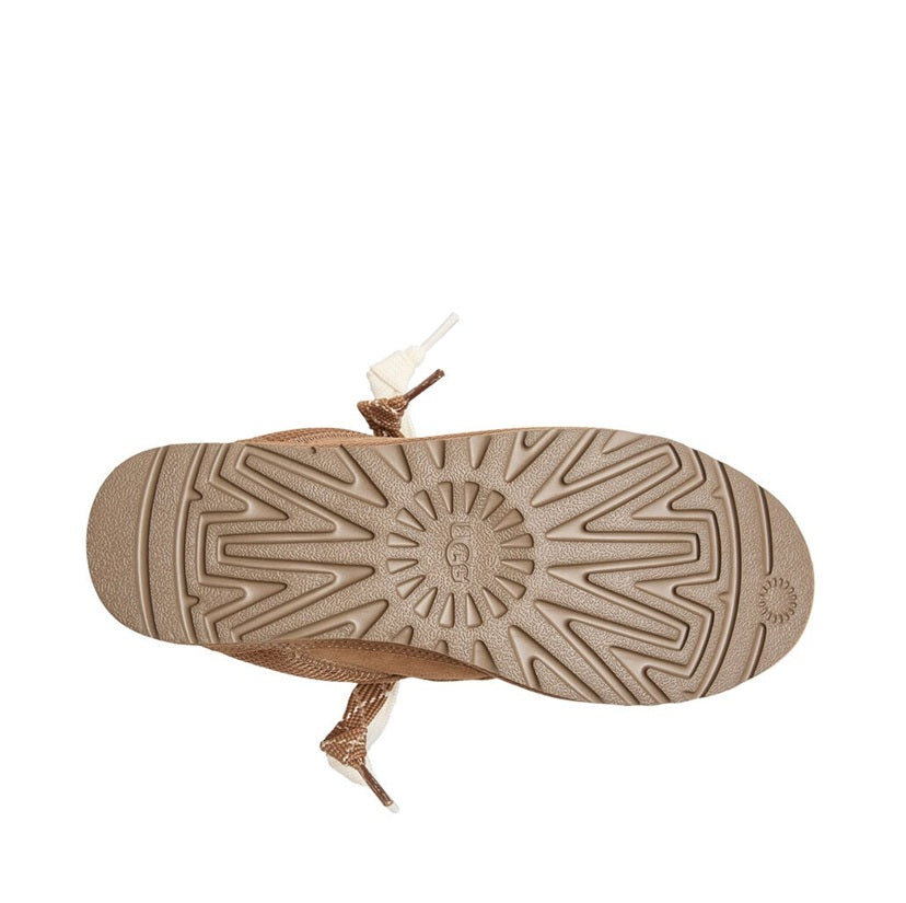 Ovandelen i äkta mocka och återvunnen canvasmesh ger en trendig texturkombination som lyfter varje outfit. Den fjädrande sulan i sockerrörsbaserad EVA gör skon otroligt lätt och skön, med den signaturkänsla du bara får från UGG®.